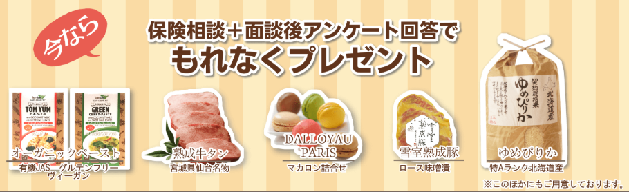 保険相談は無料ですが、ヒアリング等で時間がかかるのでせっかくなら何かもらえると嬉しいですよね。